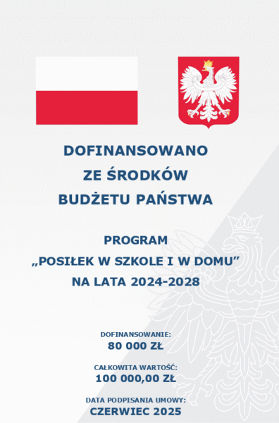 Szkoła Podstawowa im. Marszałka Józefa Piłsudskiego w Krześlinie w 2025 r. skorzystała ze wsparcia w ramach programu „Posiłek w szkole i w…